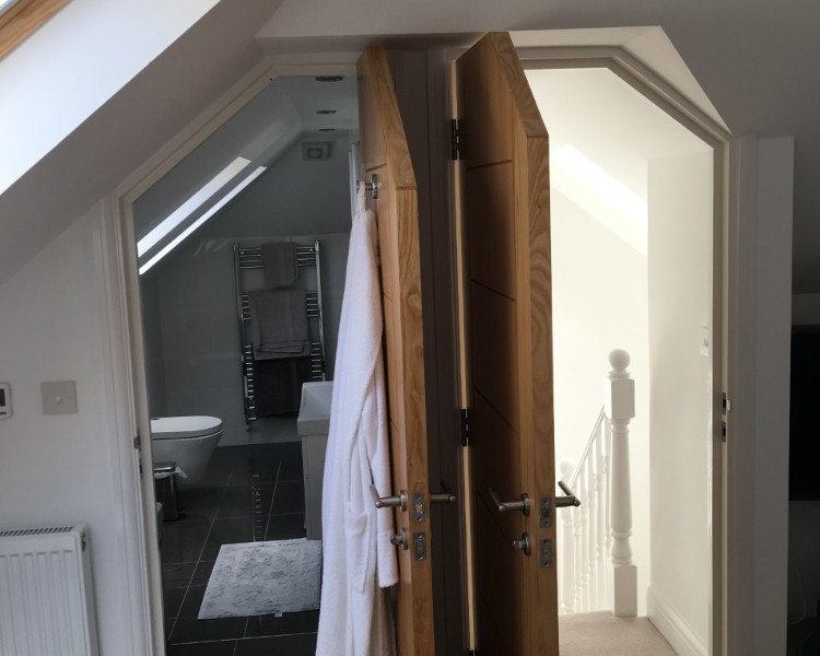Dormer-free design with bespoke wardrobes and bathroom fittings.